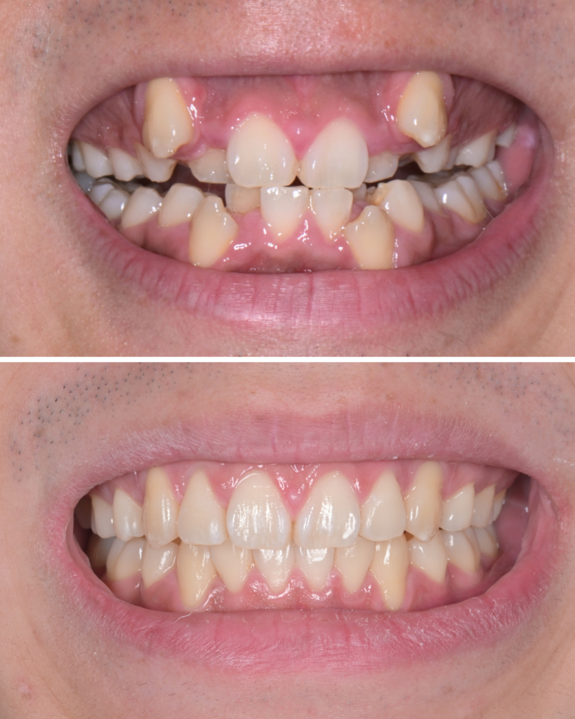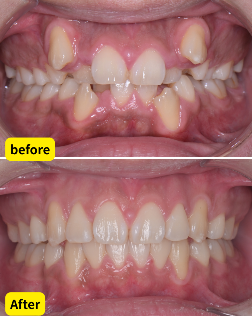 歯並びが悪い、歯が短いなど複数の問題が原因でガミースマイルになっているケースがあります。そのような場合でも当院では、対応は可能となります。通常は歯並びの治療してから、歯茎の治療に移ります。