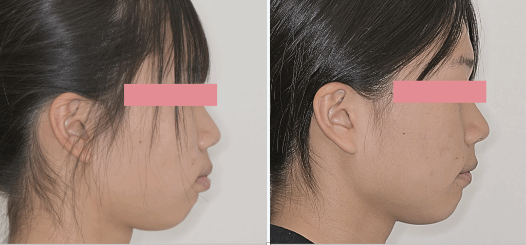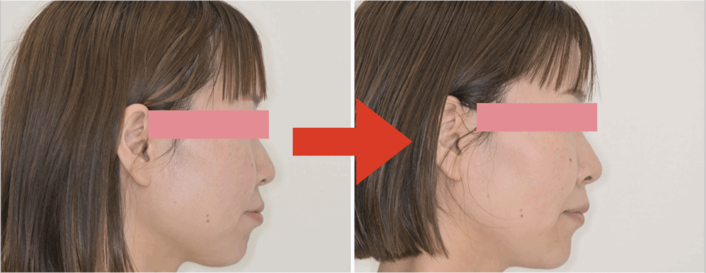 非抜歯矯正は、歯を抜かずに綺麗に歯を並べる方法ですが、抜歯矯正よりも口元を下げれるということは絶対にありません。それでも上の前歯が前に傾斜している出っ歯のケースでは歯を抜かない矯正でもある程度は改善可能なので、実際の変化を紹介したいと思います。