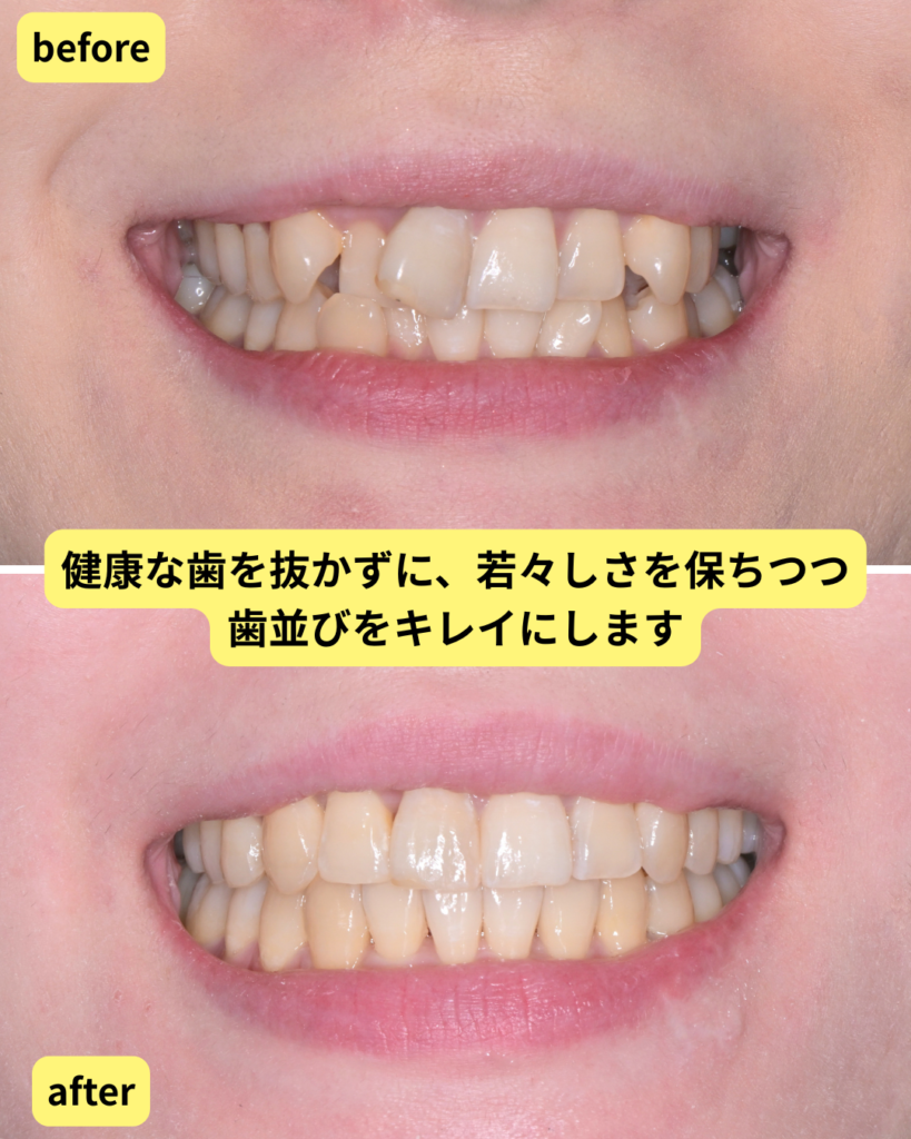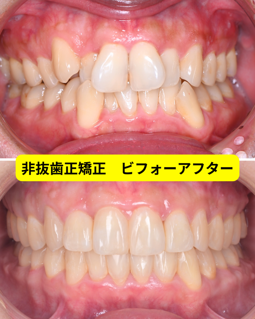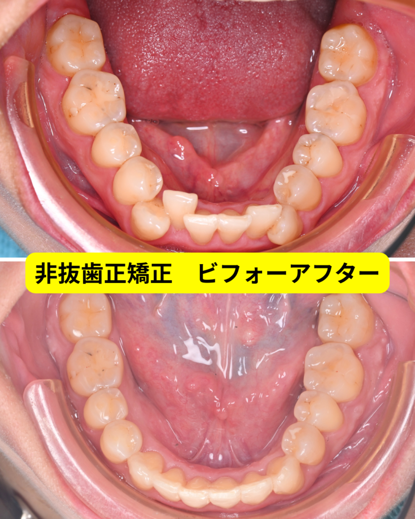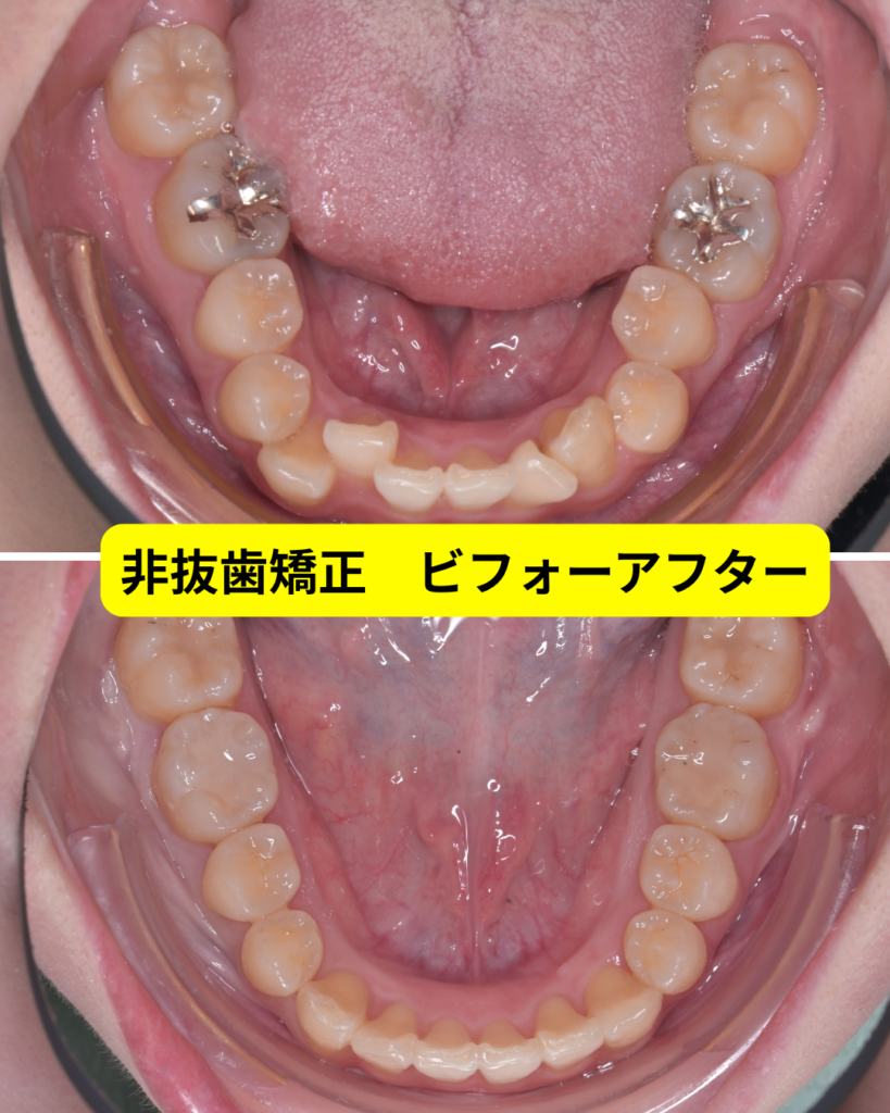 非抜歯矯正のビフォーアフター|抜歯・ワイヤーと言われた方がマウスピース矯正で改善した症例