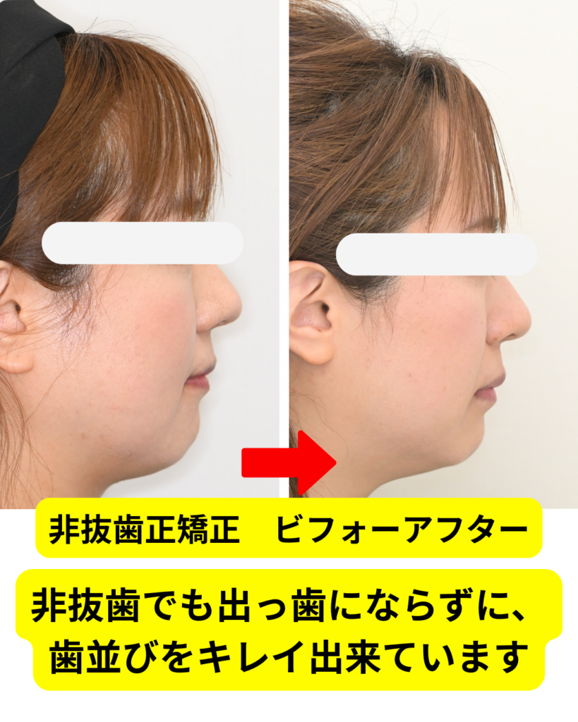 歯を抜かずに矯正できるのか、そして本当に口元が悪化しないのか。 文章だけでは伝わりにくいため、まずはビフォーアフターをご覧ください。