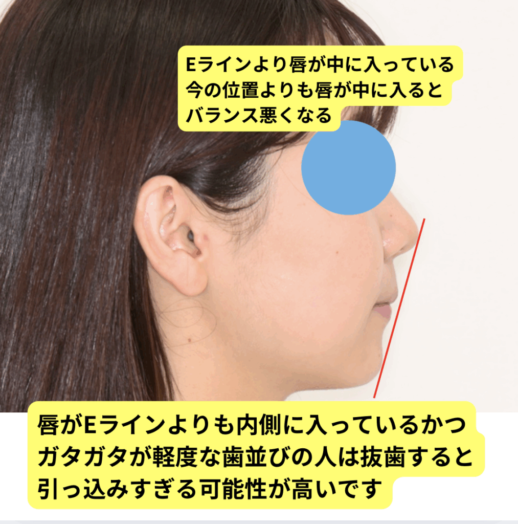 ガタガタが少ない場合は、口元が引っ込みすぎないか注意